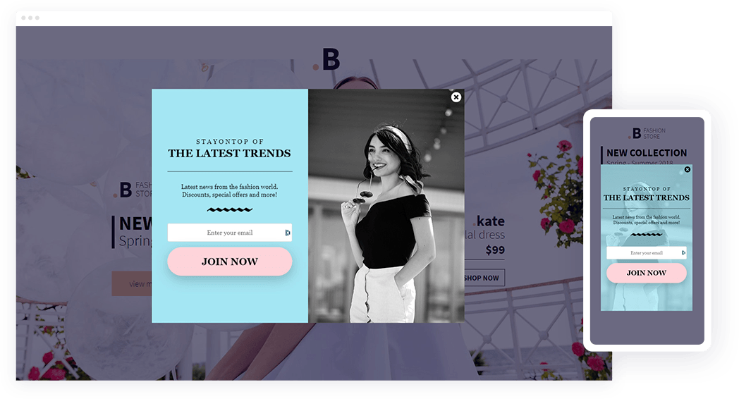 Konwertuj odwiedzających w leady sprzedażowe, również przez pop upy, które otrzymujesz w ramach swojego konta w Landingi.