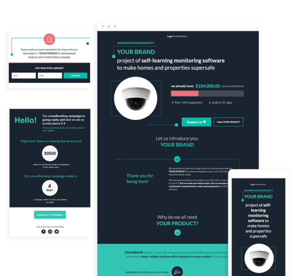 Society loves supporting great ideas! Use it and show your product or service to get money for your business. Crowdfunding is not only trendy but also effective. Tell about your brand, your development stage and rewards. There are two landing page templates: to carry a direct crowdfunding campaign via your page or to redirect to an external crowdfunding platform.